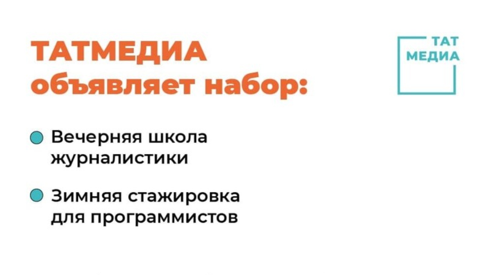 «Татмеда» акционерлар җәмгыяте бушлай медиамәктәптә ике төркем туплавы турында игълан итте. Уку журналистлар һәм программалаучылар өчен уздырыла, алар медиаконтентны алга этәрүне тәэмин итәчәк.