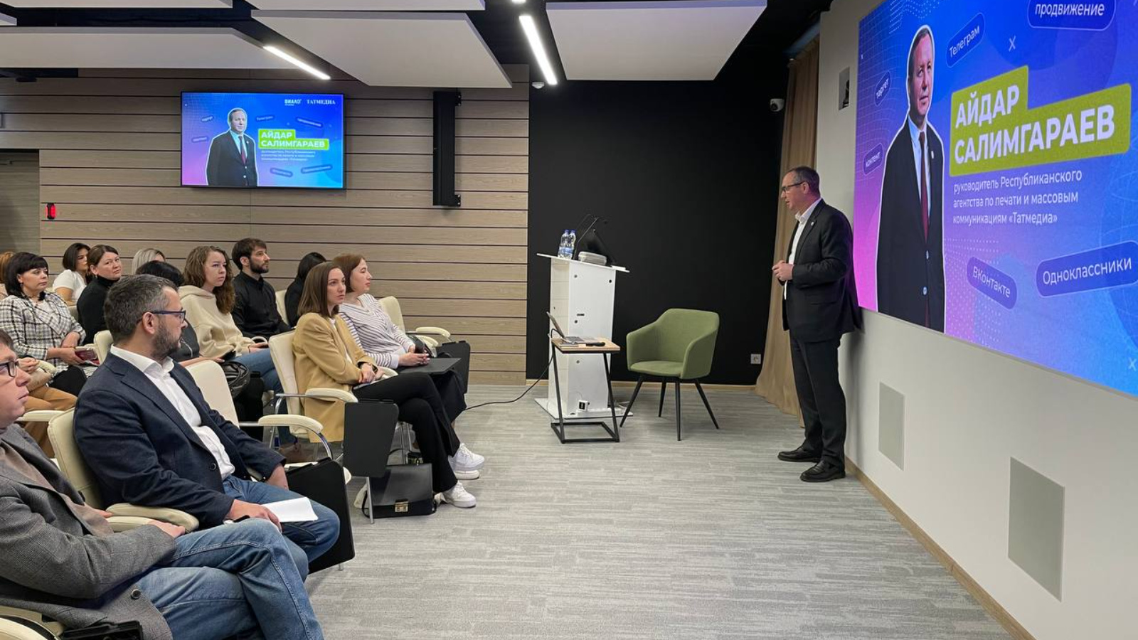 «Социаль челтәрләрдә актив эшләү – басма статусының күрсәткече». Татарстан Республикасы «Татмедиа» республика матбугат һәм массакүләм коммуникацияләр агентлыгы җитәкчесе Айдар Сәлимгәрәев «SMM-лаборатория» белем бирү семинары тыңлаучылары алдында чыгыш ясаганда шулай дип белдерде.